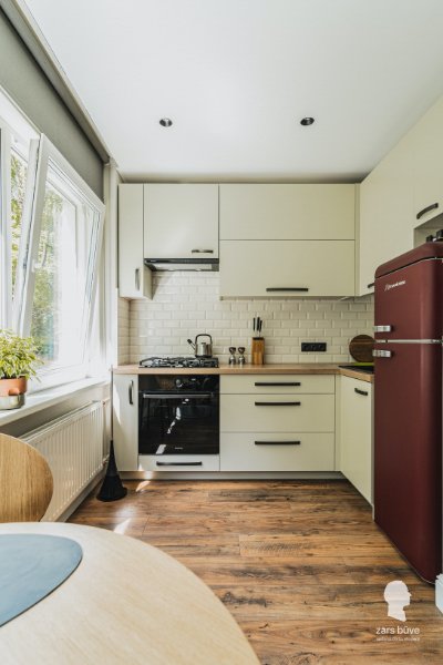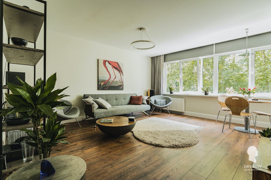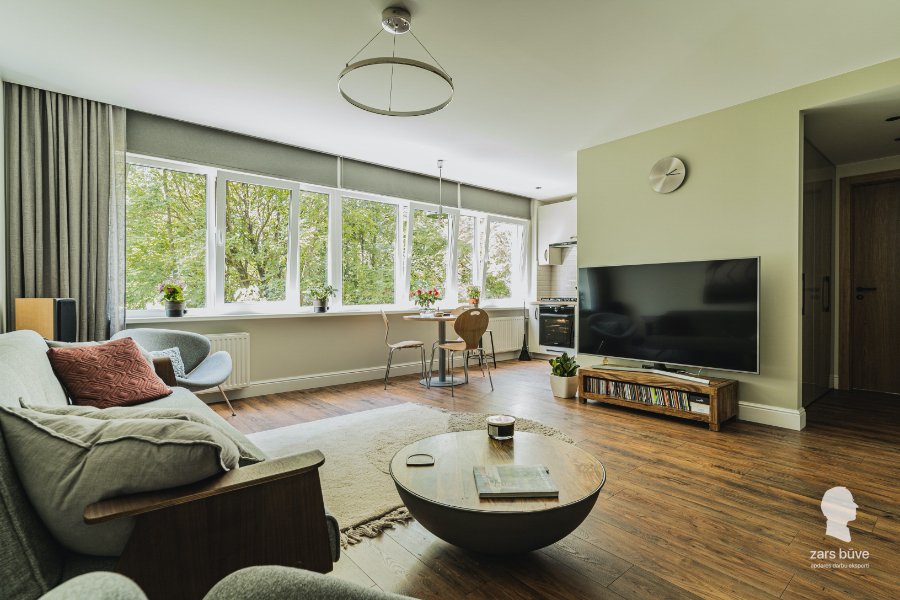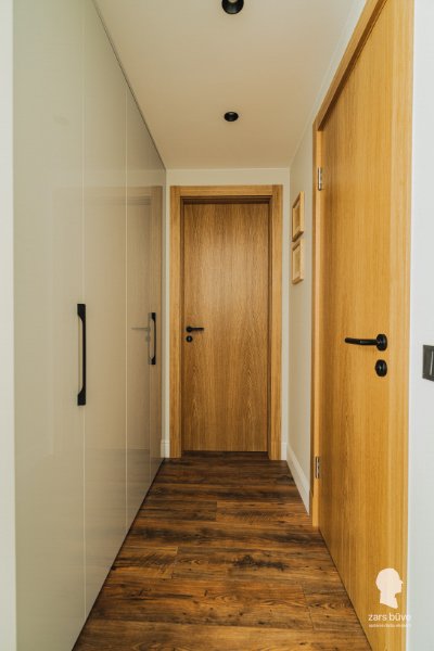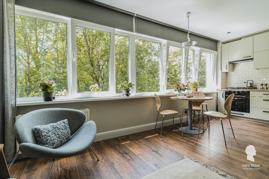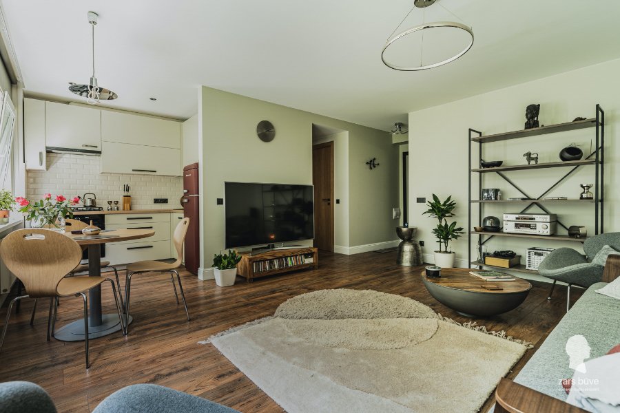 Šajā lietuviešu projekta dzīvoklī mēs veicām pilnu rekonstrukciju, kas ietvēra arī pārbūvi. Īpaša šī dzīvokļa vērtība ir brīnišķīgais skats – lielie panorāmas logi to padara par īstu dārgumu. Lai panāktu, ka telpa ir plašāka, un sniegtu dzīvokļa iemītniekiem iespēju izbaudīt visas krāšņā skata priekšrocības, virtuve tika apvienota ar dzīvojamo istabu. Interjera dizains veidots mājīgs, vienkāršs un omulīgs; vienlaikus tas ir arī mūsdienīgs, nodrošinot dzīvokļa saimnieku labsajūtu un rūpējoties, lai ikviens šajā mājoklī justos ērti.