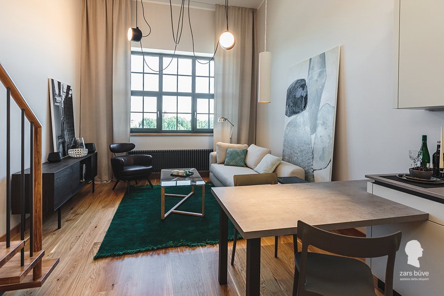 Šajā objektā mēs veicām iekšējos apdares darbus astoņos dzīvokļos. Darbus uzsākot, objektā jau bija izbūvētas starpsienas un grīdas. Objekts atrodas skaistā vietā ar lielisku skatu uz Daugavu. Šis projekts ir unikāls ar to, ka dzīvokļiem ir nestandarta griestu augstumi; daļa dzīvokļu ir divos un pat trīs stāvos, kas darbu pie apdares un interjera veidošanas padarīja īpaši interesantu.